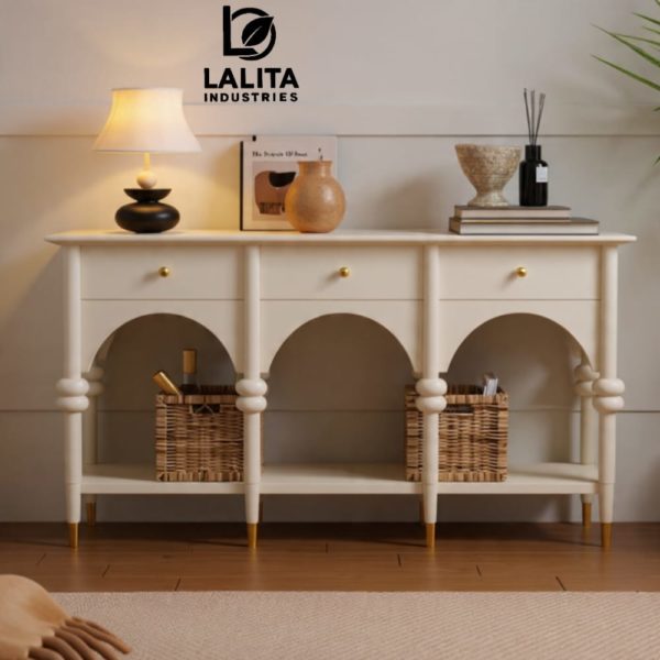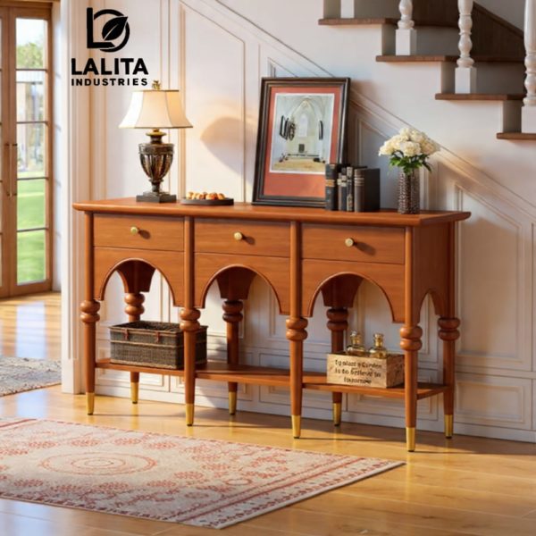 WOODEN CONSOLE TABLE WITH 3 DRAWER AND OPEN SHELF STORAGE FOR LIVING ROOM, BEDROOM, KITCHEN, HOTEL AND HOME
